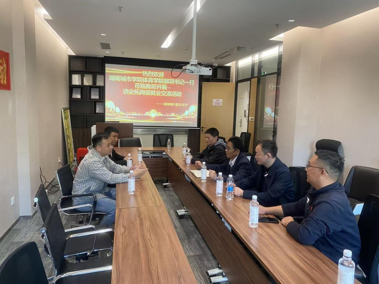 11月29日上午,郭羽、许进一行走访招商银行长沙星沙支行,与招商银行长沙星沙支行行长王一夫座谈。双方就体育专业人才在金融领域的应用潜力进行交流。王行长表示,支行当前人才需求总体保持稳定,但对综合素质突出的体育人才持开放态度。双方此次就进一步深化实习实践、优化人才共育机制达成新的共识。