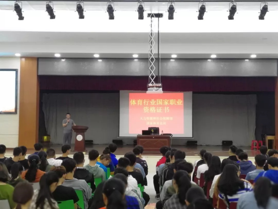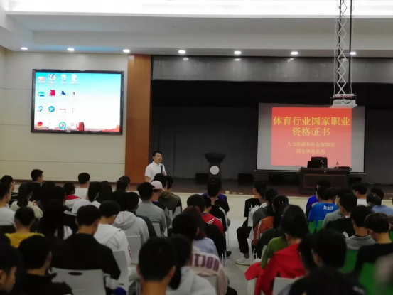 为积极推进beats365社会体育指导员国家职业资格培训工作的开展,夯实应用型人才培养实效,更好地为员工提供服务。5月14日晚上7:30,公司体育行业国家职业资格证认证讲座在新食堂3楼活动中心举行,公司党总支副书记何冬林出席并主持讲座,beats3652018级全体同学聆听了讲座。