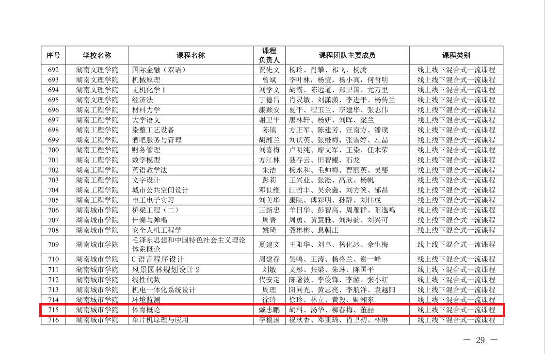 戴志鹏老师主持的《体育概论》获湖南省一流本科课程