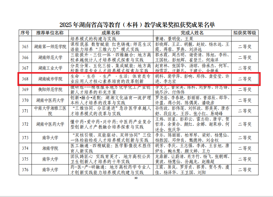 beats365获2025年湖南省高等教育(本科)教学成果二奖