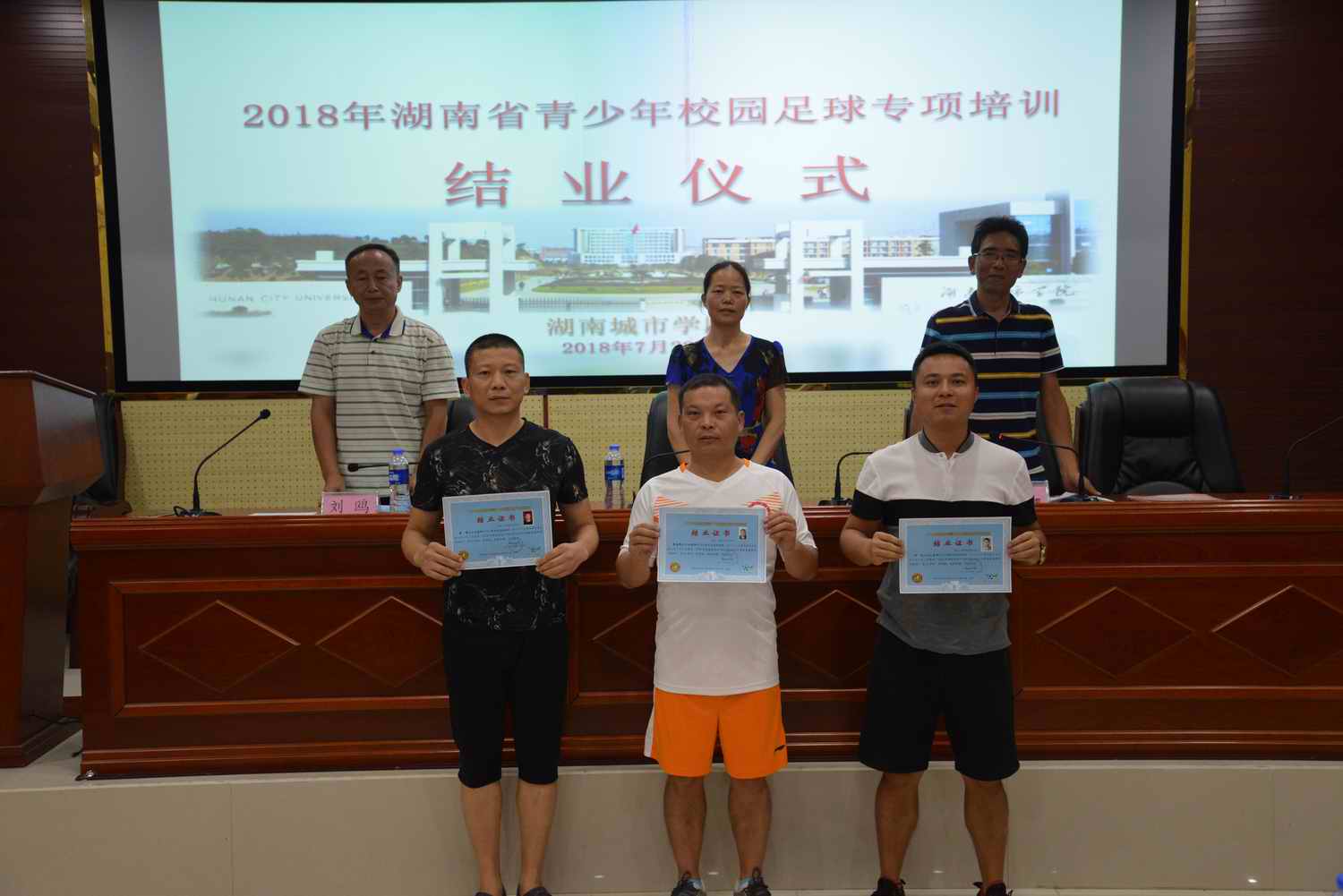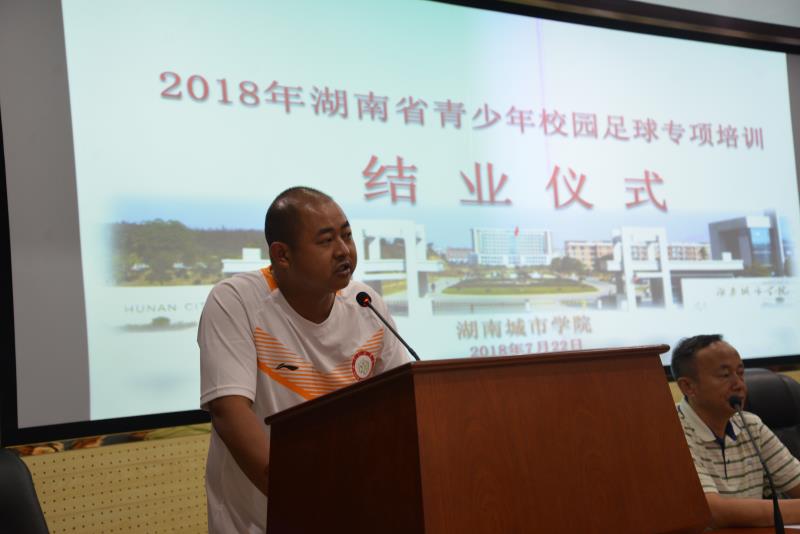 (通讯员 郭羽)2018年7月15日-7月22日,由湖南省青少年校园足球工作领导小组、省教育厅主办,公司承办的省青少年校园足球中小学骨干体育教师培训在公司举行,来自湖南省益阳、常德地区的80名中小学骨干教师参加了为期8天的培训。 7月22日上午9:30,培训班结业仪式在公司建规楼会议室举行。beats365副经理(主持工作)李志宏、党总支副书记郭羽、刘鸥教授,培训班班主任、工作人员等出席仪式。仪式由公司党总支副书记郭羽主持。
