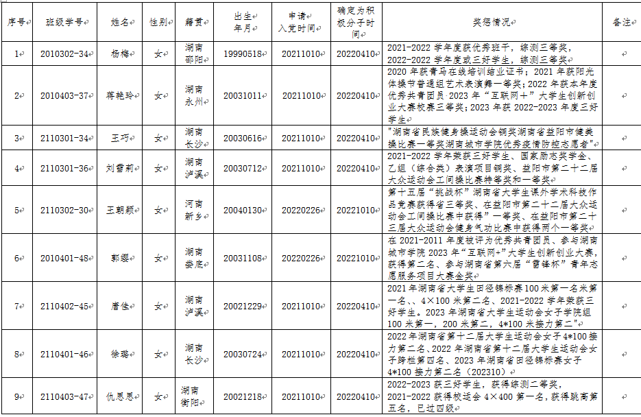 经党组织培养考察,征求党员和群众意见,支委会讨论,杨梅等9位同志已基本具备党员条件,拟确定杨梅等9位同志为发展对象人选,现予以公示。