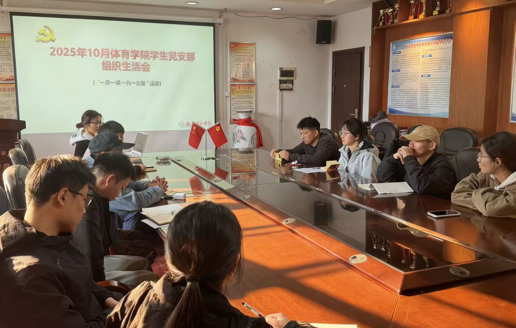 随后,结合实际推进“一月一课一片一实践”活动,以多样化形式强化党员实践意识与服务能力。在民主议事阶段,全体党员聚焦“信念铸魂”教育要求,结合抗联将士“以信念强根基”的精神启示,重点研讨党员志愿服务2025级新生晚自习的具体方案。